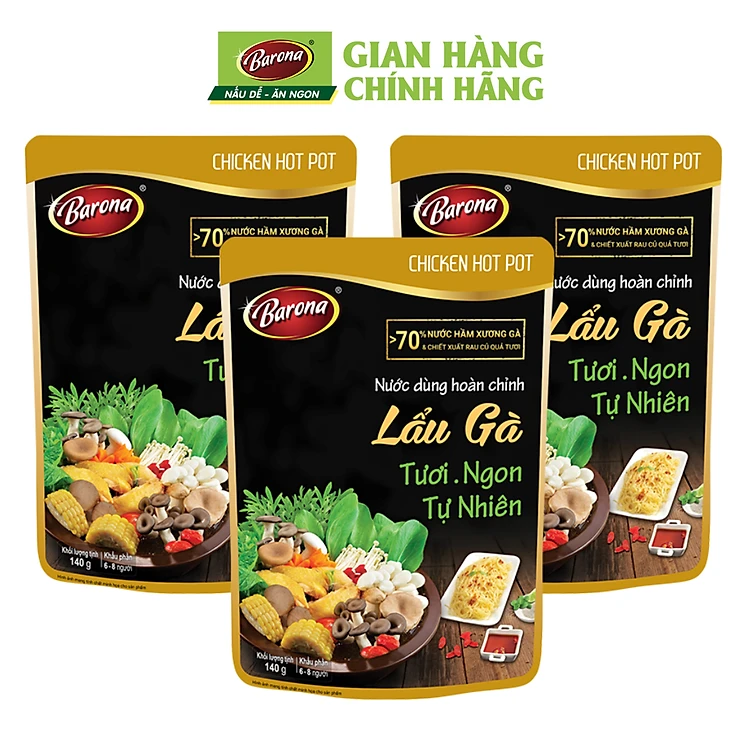 Nước dùng hoàn chỉnh Barona - Lẩu Gà được dùng để chế biến món Lẩu Gà mà không cần nêm nếm các gia vị khác. Rất Ngon và Tiện để thiết đãi tiệc nhà hay biến tấu các món sáng tươi ngon.