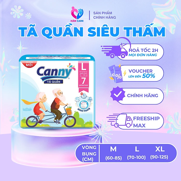 COMBO 3 gói Tã/Bỉm Quần Người Lớn Canny Siêu Mềm, Siêu Thấm, Kháng Khuẩn Size M8,L7,XL7 Miếng