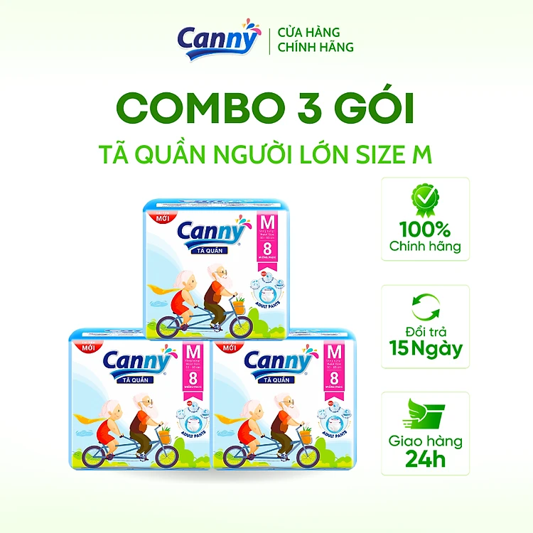 Combo 3 Tã/Bỉm Quần Người Lớn Canny Siêu Mềm, Siêu Thấm, Kháng Khuẩn, Tiết Kiệm Size M8/L7