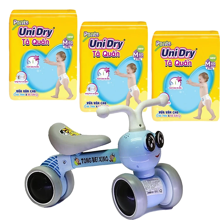 Combo 3 gói tã quần Unidry M60 tặng xe chòi chân con ong phát đèn nhạc VBCare 052