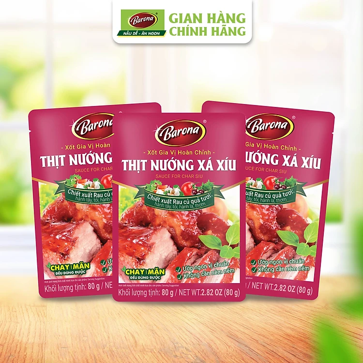 Combo 3 gói Xốt Gia vị hoàn chỉnh Barona - Thịt Nướng Xá Xíu 80gr