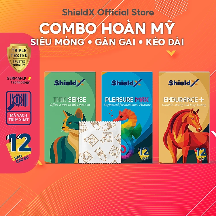 Combo 3 Hộp Bao Cao Su ShieldX - Hộp 12 Cái