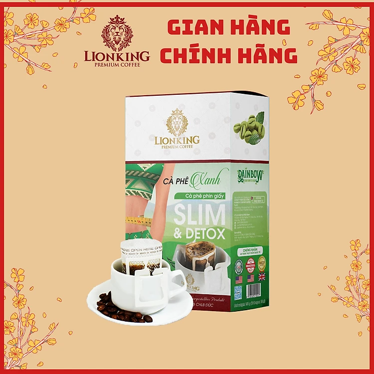 Combo 3 Hộp Cà Phê Xanh Phin Giấy Lion King - Thanh Lọc Cơ Thể, Đốt Cháy Mỡ Thừa ( Hộp 10 gói x 15g)