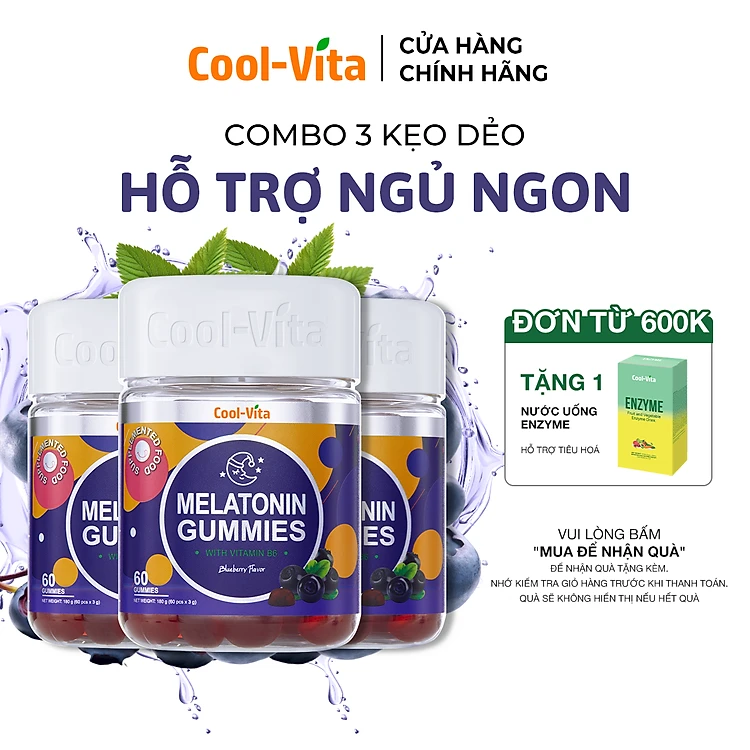 Combo 3 Hộp Kẹo Dẻo Melatonin Hỗ Trợ Giấc Ngủ Ngon Sleep Well Gummies Hỗ Trợ Giảm Căng Thẳng Kết Hợp Vitamin B6 Coolvita