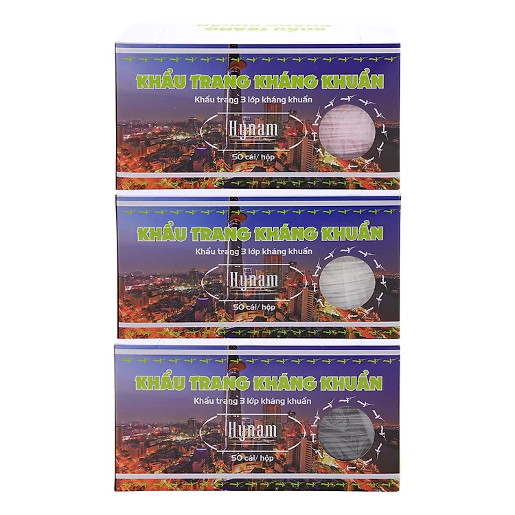 - Combo 3 Hộp Khẩu Trang Kháng Khuẩn 3 Lớp Hy Nam - Hồng, Trắng, Xám Đen được làm từ chất liệu vải không dệt Poly Propylene PP cao cấp, đã được khử trùng ngiêm ngặt giúp chống bụi và nguồn bệnh, đảm bảo sức khỏe cho bạn và gia đình.
