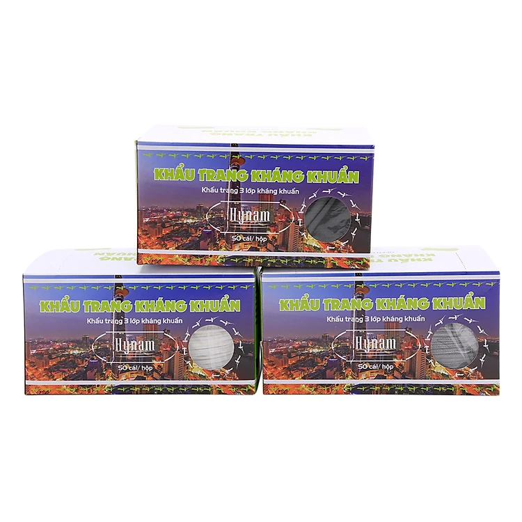 Combo 3 Hộp Khẩu Trang Kháng Khuẩn 3 Lớp Hy Nam - Trắng, Xám, Đen