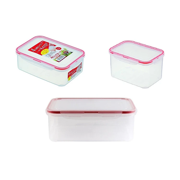 Combo 3 hộp nhựa bảo quản thực phẩm Inomata hình chữ nhật - Có khóa nắp 4 chiều