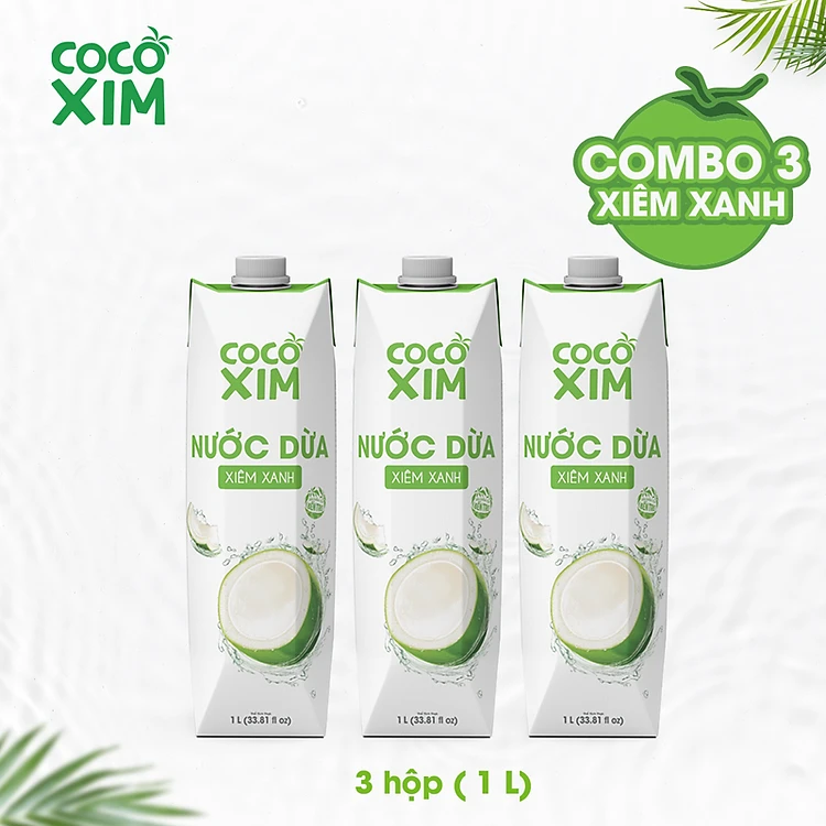 COMBO 3 Hộp Nước dừa Cocoxim đóng hộp Cocoxim Xanh dung tích 1000ml/Hộp