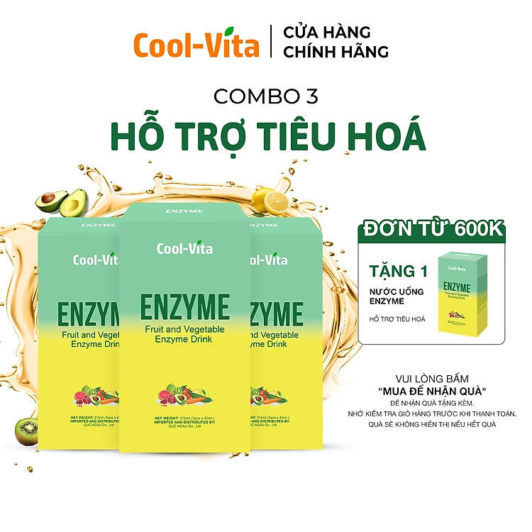 Combo 3 Hộp Nước Uống Bổ Sung Enzyme Chiết Xuất Từ Trái Cây và Rau Củ Hỗ Trợ Tiêu Hoá, Thanh Lọc Cơ Thể Coolvita - Hộp 7 Túi