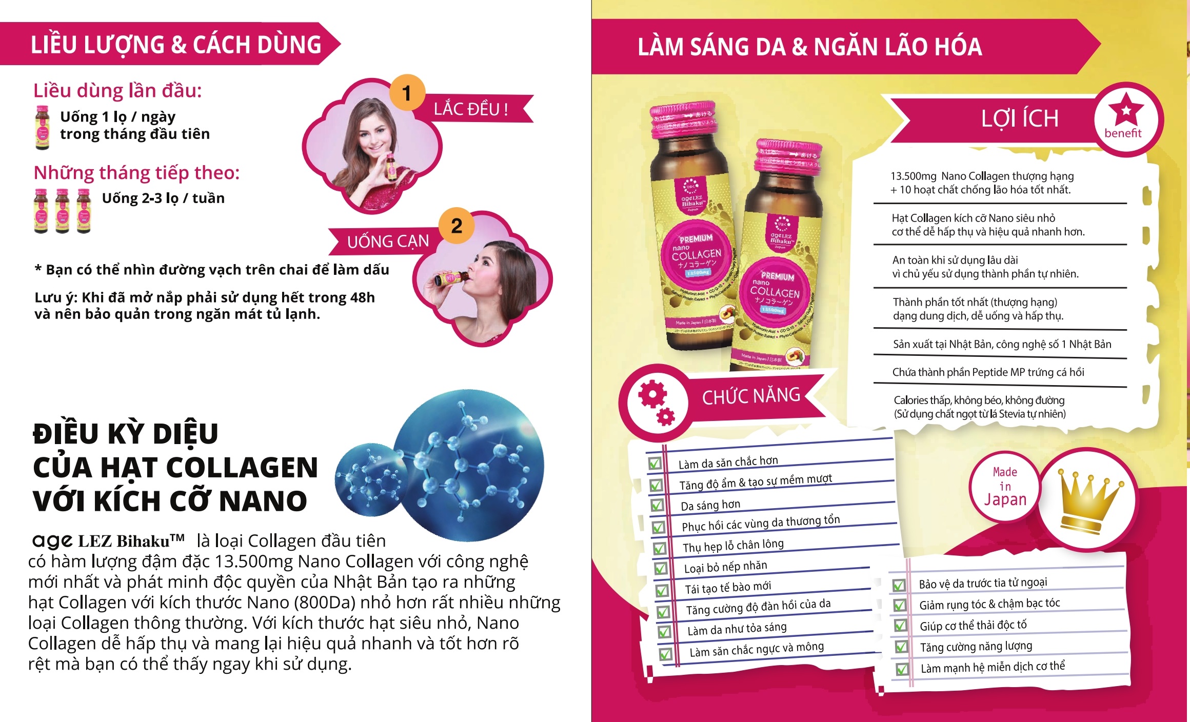 Combo 3 hộp Premium Nano Collagen Nhật Bản - 13500mg Agelez Bihaku (dạng nước)