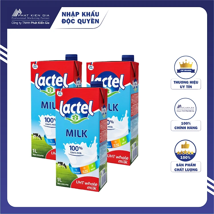 COMBO 3 Hộp Sữa Tiệt Trùng Nguyên Chất Lactel 1L | Lactel UHT Whole Milk 1L