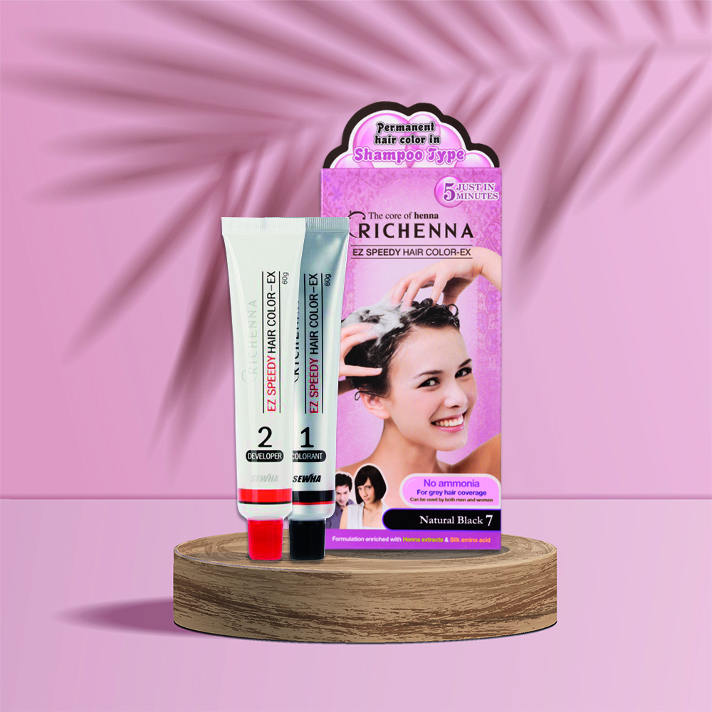 Gội nhuộm phủ bạc thảo dược Richenna EZ Speedy Hair-EX Hàn Quốc màu đen tự nhiên 60G