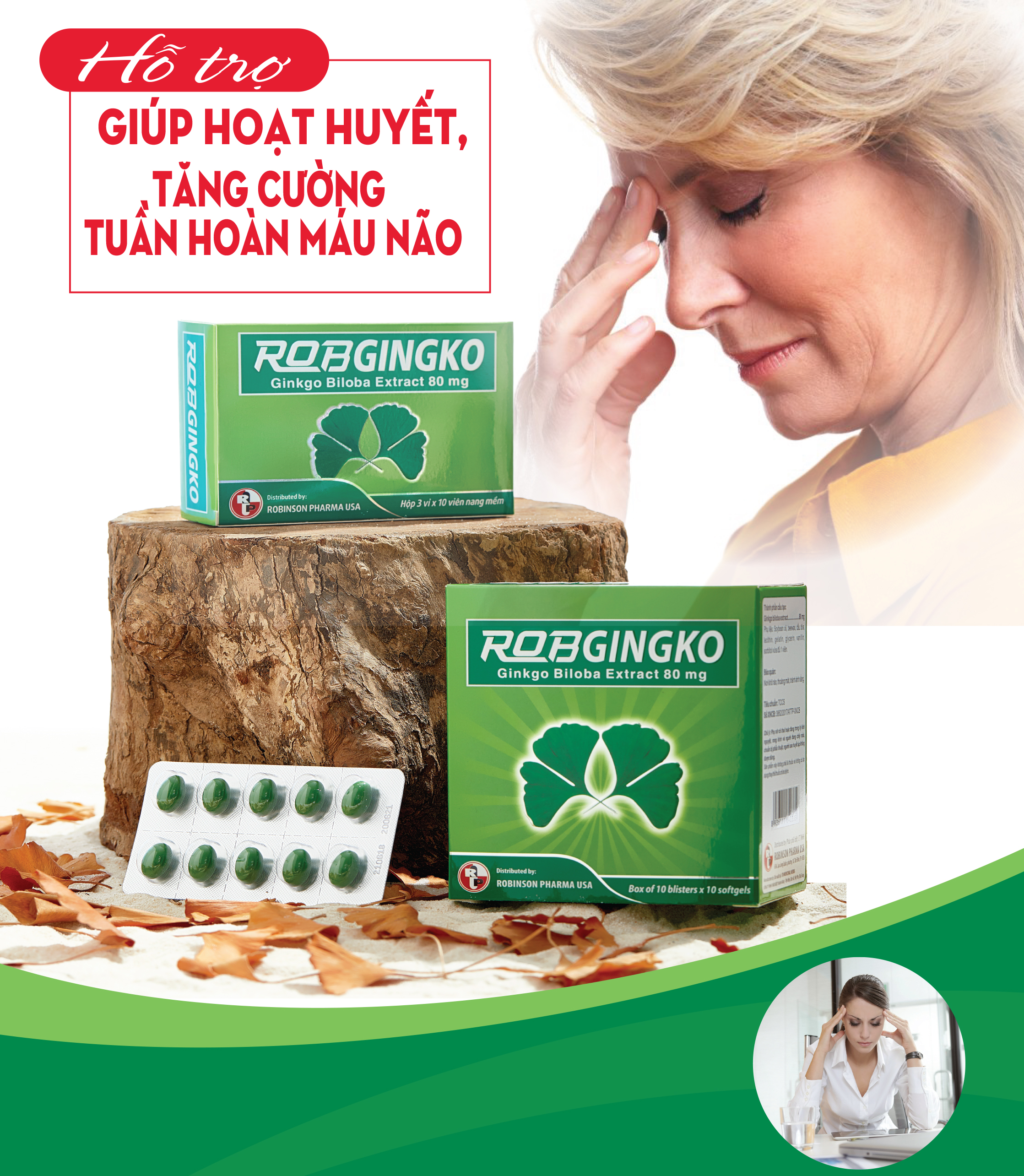 · Hỗ trợ các triệu chứng suy tuần hoàn não như: chóng mặt, tình trạng hay quên, ngủ gà ngủ gật, kém tập trung.