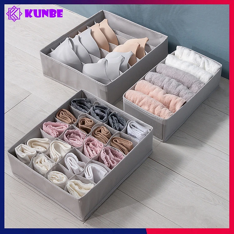 Combo 3 Hộp Vải Đựng Đồ Lót Tất Vớ KUNBE, Túi Vải Không Dệt Nhiều Ngăn Tiện Lợi, Siêu Tiết Kiệm Không Gian