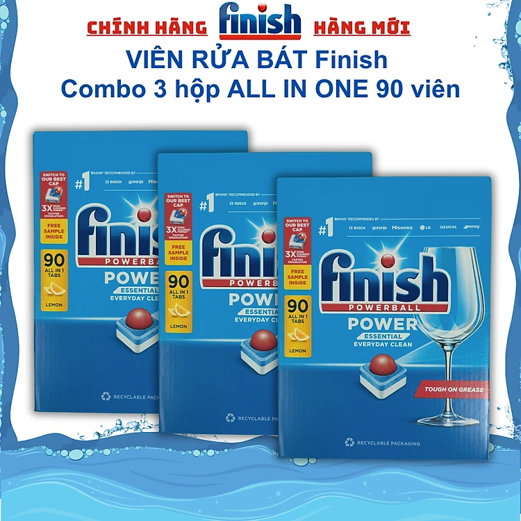 Combo 3 hộp Viên rửa bát Finish All in one 90 viên