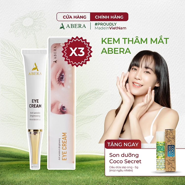 Đôi mắt là cửa sổ tâm hồn” những vết thâm quầng mắt và nếp nhăn tuy không ảnh hưởng đến sức khỏe nhưng lại ảnh hưởng đến vẻ đẹp tự nhiên của bạn vì phần lớn thời gian khi giao tiếp của chúng ta là thông qua ánh mắt.Vì lý do đó nhà Abera đãcho ra đời dòng kem mắt Abera giúp bạn lấy lại sự tư tin trong công việc cũng như sự tự tin về vẻ đẹp tự nhiên của bản thân mình. Kem mắt Abera được làm từ các thành phần tự nhiên giúp giảm nhanh thâm sạm vùng da quanh mắt, vừa bổ sung vitamin E chống lão hoá hiệu quả, cải thiện các nếp nhăn, bọng mắt, giảm tình trạng da quanh mắt nhăn nheo, thiếu sức sống.