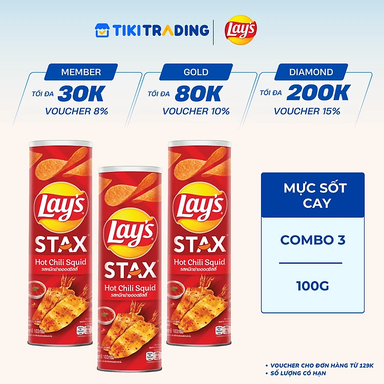 Combo 3 Lay's Stax Khoai Tây Miếng Vị Mực Sốt Cay 100gr