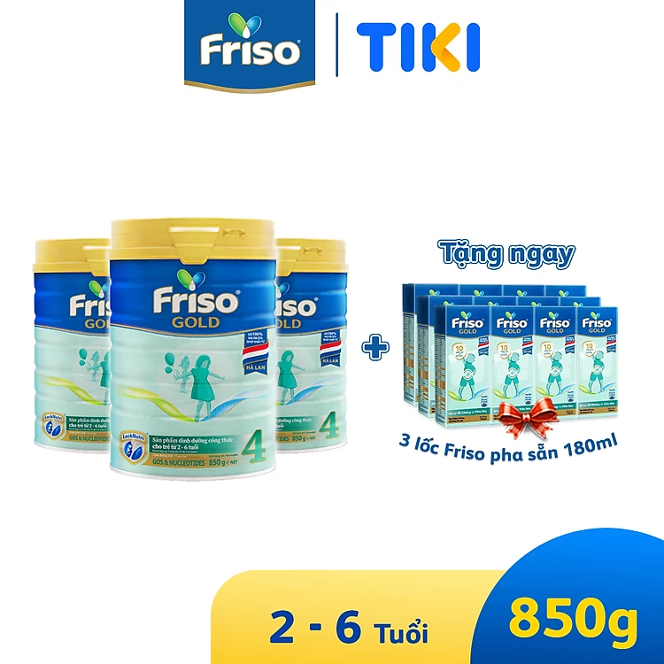 Combo 3 lon sữa Bột Friso Gold 4 850g (Dành Cho Trẻ Từ 2 - 6 Tuổi) - Tặng 3 lốc RDT 180ml
