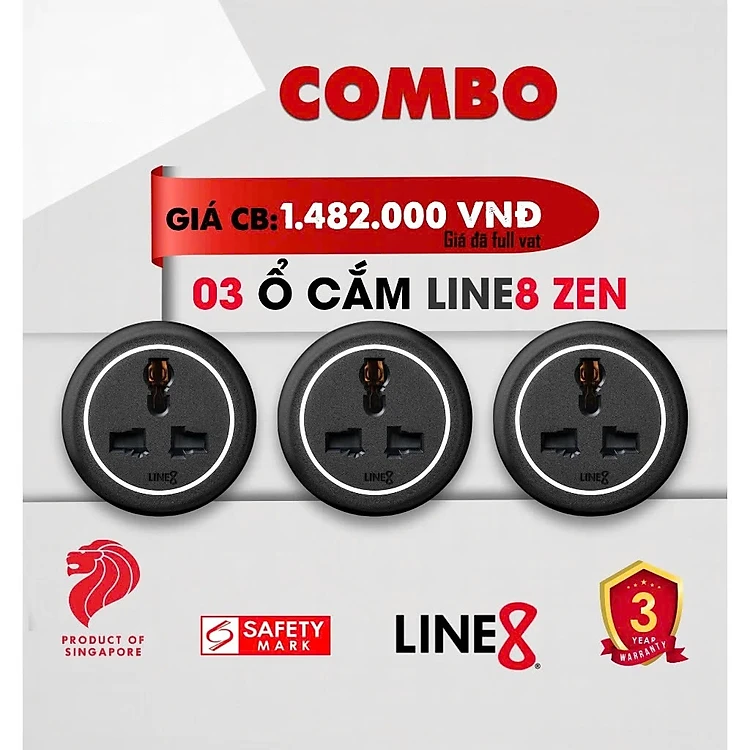 Combo 3 Ổ Cắm Điện Line8 Zen MLT / Chuẩn Quốc Tế / Hàng Chính Hãng