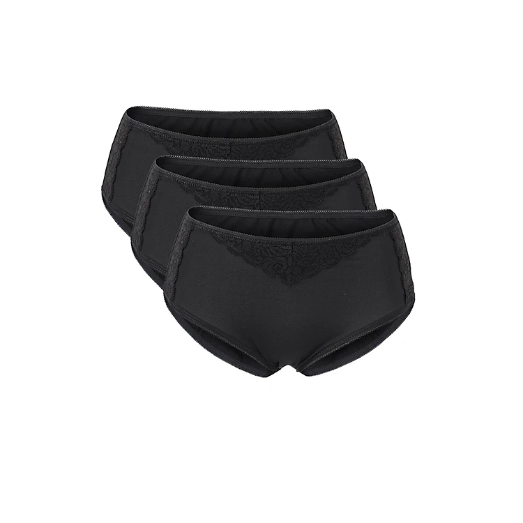 Combo 3 Quần Lót Nữ Misaki QMHKW1560MR - Đen được may bằng chất liệu Microfiber cao cấp, tạo cảm giác mịn màng, đồng thời có sự co dãn, đàn hồi và thông thoáng tốt. Quần với sự kết hợp giữa thiết kế tinh tế cùng sắc màu sang trọng, sẽ mang lại cho phái nữ sự quyến rũ và gợi cảm nhất. Thiết kế lưng cao, giúp cho vòng hai được thon gọn hơn, phần ren họa tiết hoa được may phối khéo léo và tinh tế.