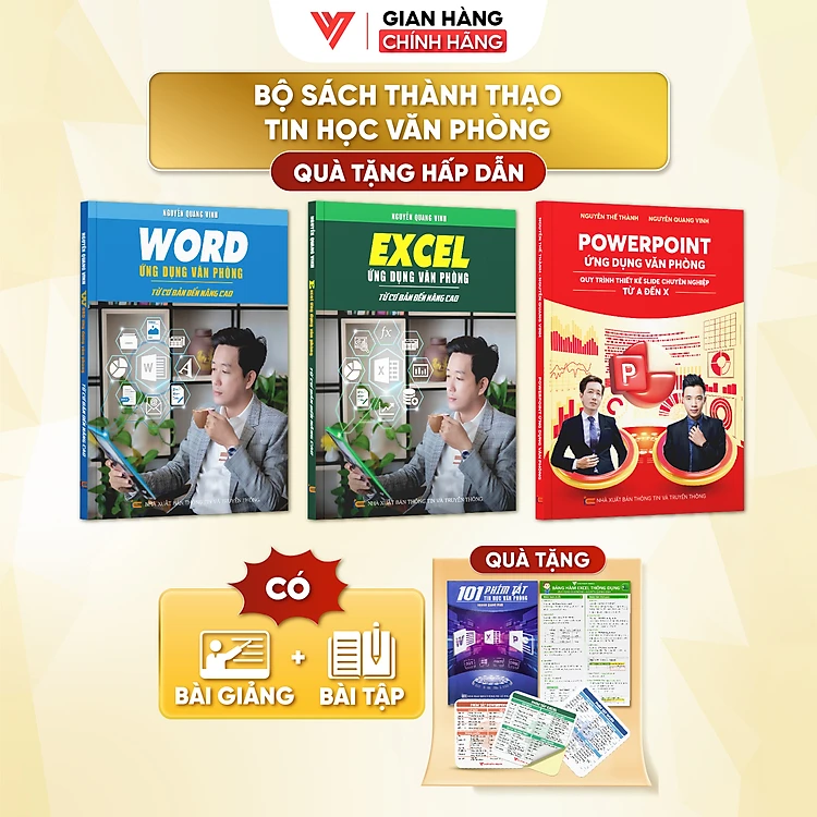 Combo 3 Sách Excel - Word - PowerPoint Ứng Dụng Văn Phòng Có Kèm Khoá Học Online ĐÀO TẠO TIN HỌC