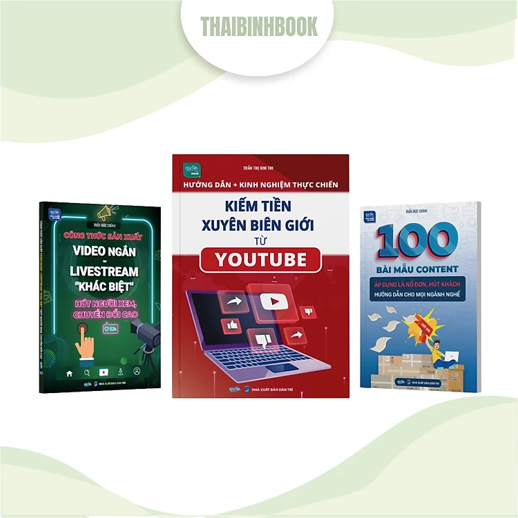 Combo 3 sách nghề: Kiếm tiền xuyên biên giới từ Youtube, Video ngắn livestream "khác biệt", 100 Bài mẫu content