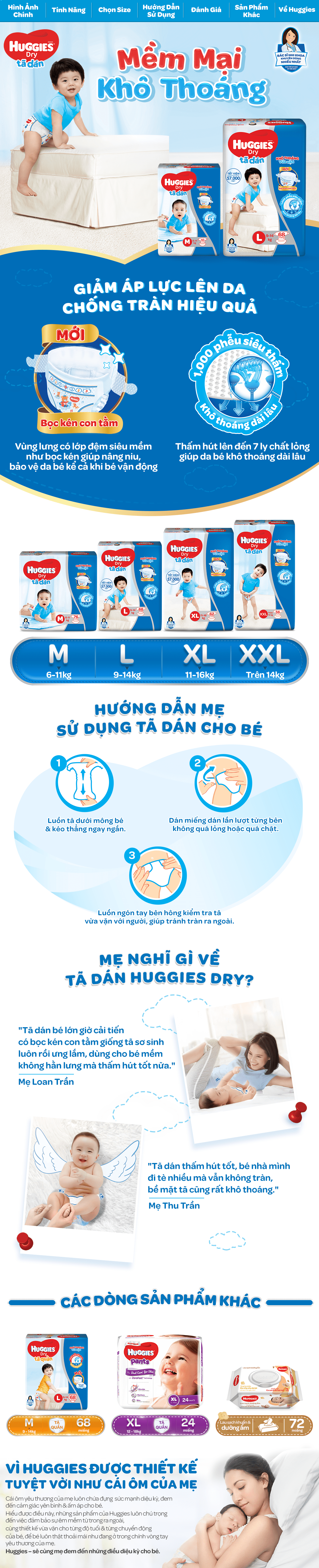 Tã bỉm Huggies là thương hiệu tã bỉm uy tín từ Hoa Kỳ, đã có mặt trên thị trường hơn 30 năm. Trải qua từng đó thời gian, Huggies đã xây dựng được lòng tin và nhận được sự hài lòng của các bà mẹ trên 175 quốc gia. Với sứ mệnh chăm sóc và bảo vệ sức khỏe cho trẻ em Việt Nam, Huggies luôn hướng đến những sản phẩm an toàn dành cho bé.