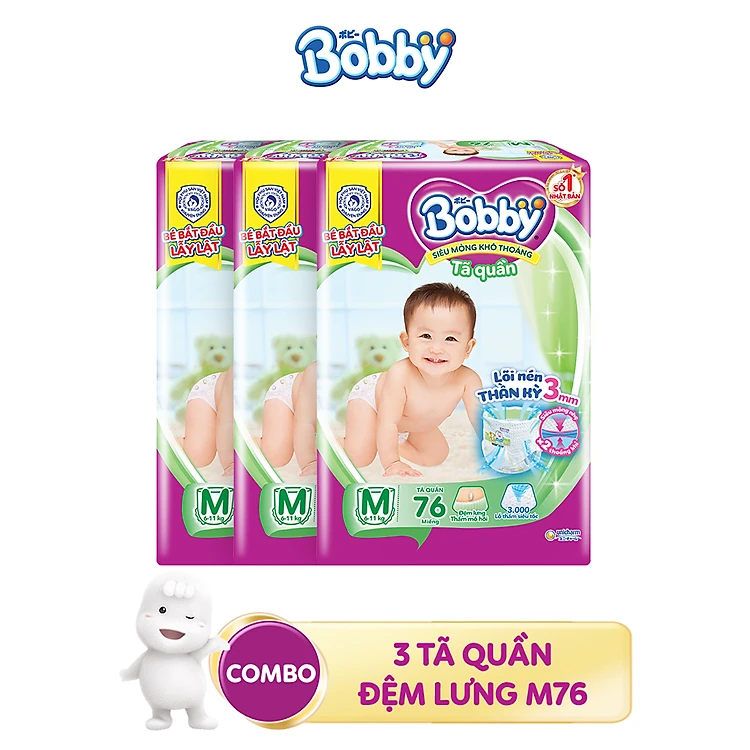 Combo 3 Tã quần Bobby Siêu thoáng đủ size M76/L68/XL62/XXL56