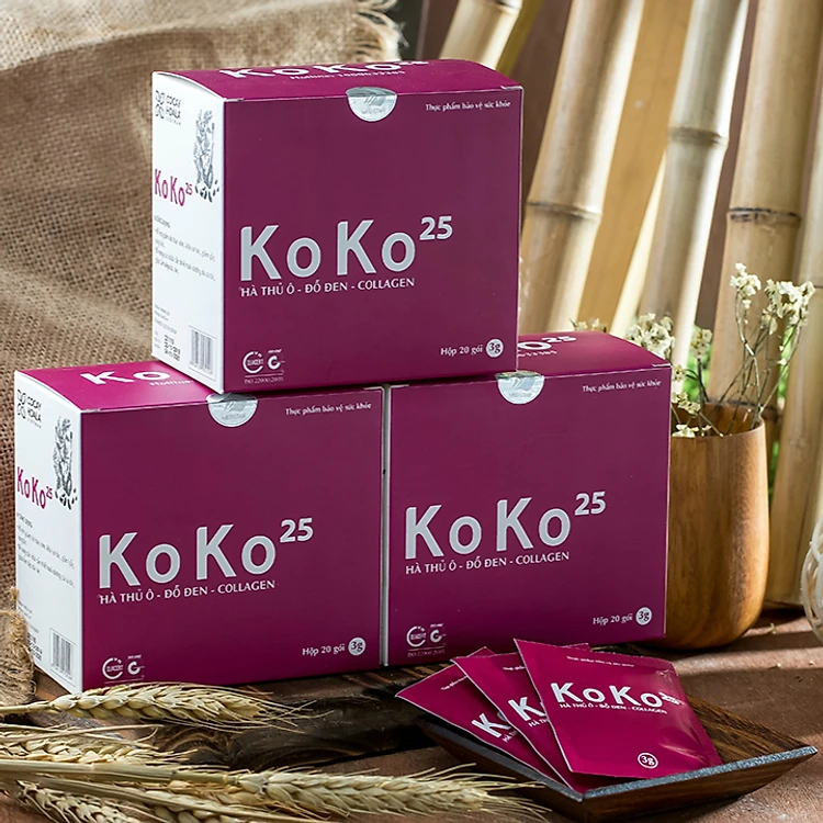 KoKo 25 là sản phẩm đầu tiên trên thị trường kết hợp Hà thủ ô và Collagen trong cùng một sản phẩm giúp cải thiện tóc bạc sớm, giảm gãy rụng và trẻ hóa làn da.