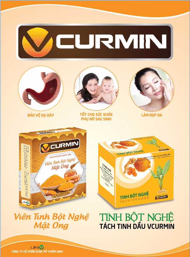 Tinh bột nghệ VCURMIN - Sản phẩm chuyển giao đề tài khoa học công nghệ trọng điểm cấp nhà nước – Đề tài Viện Hàn Lâm khoa học và công nghệ Việt Nam - công ty cổ phần Dược Mỹ Phẩm UNIV. Tinh Bột nghệ VCURMIN được chiết xuất 100% từ củ nghệ tươi đã tuyển chọn kĩ, với công nghệ tiên tiến và quy trình sản xuất đảm bảo VSATTP mà vẫn giữ được màu sắc hương vị tự nhiên và hàm lượng curcumin cao trong củ nghệ. Không sử dụng các loại hóa chất và phụ gia trong toàn bộ quá trình sản xuất. Đặc biệt với quy trình tách tinh dầu bằng công nghệ cuốn hơi nước hiện đại nhất Việt Nam.