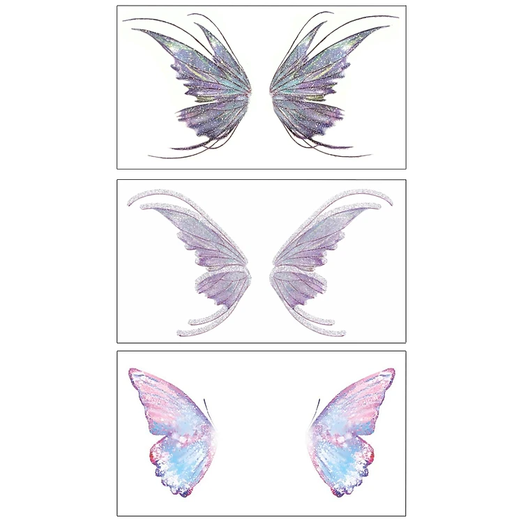 Combo 3 Tờ Hình Xăm Dán Cánh Bướm Tạm Thời MakeUp,Trang Trí Nghệ Thuật Xăm Dán Cánh Tay Mặt Lấp Lánh
