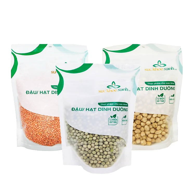 COMBO07 1 Túi Đậu Gà trắng - 1 Túi Đậu Lăng đỏ và 1 Túi Đậu Hà lan xanh nguyên hạt 500g