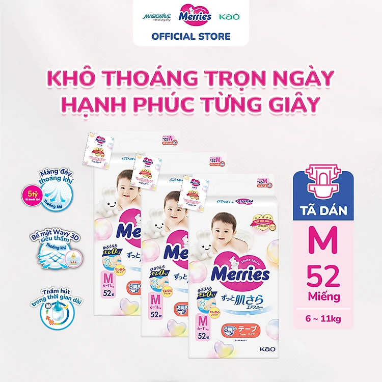 Combo 3 túi Tã dán Merries M52