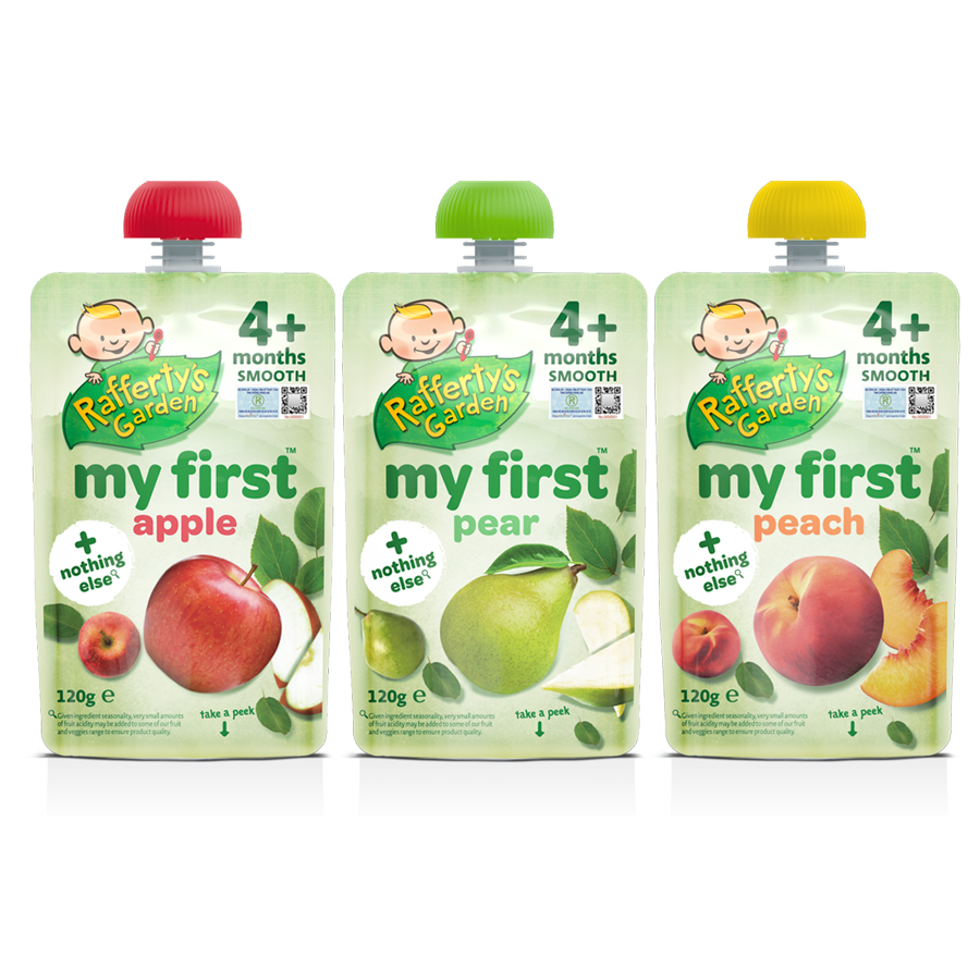 Combo 3 Túi Trái Cây Nghiền Mịn Ăn Dặm Cho Bé Từ 4 Tháng Tuổi Rafferty's Garden Táo, Lê, Đào Nguyên Chất (120g/túi)