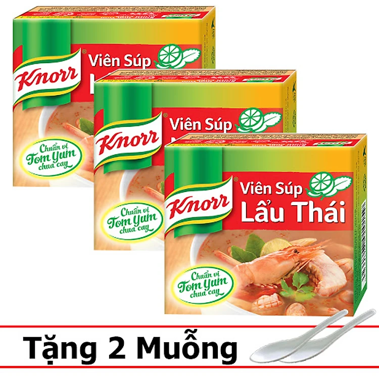 Viên Súp Lẩu Thái Knorr (3x24g) - Việc nấu nước dùng cho các món lẩu Thái, canh tom Yum,… chuẩn vị chua cay Thái Lan nay thật đơn giản vì đã có Viên Súp Lẩu Thái Knorr. Với thành phần chứa sốt ớt Thái - Nam Prik Pao và công thức cho vị chua thanh như chanh, Viên Súp Lẩu Thái Knorr sẽ đem đến cho các món lẩu cũng như các món nước vị chua cay đúng chuẩn Thái Lan. Chẳng cần dành nhiều thời gian chế biến, chỉ cần dùng 2 Viên Súp Lẩu Thái Knorr cho mỗi 1 lít nước là mẹ đã có ngay nồi nước dùng chuẩn vị Tomyum chua cay.