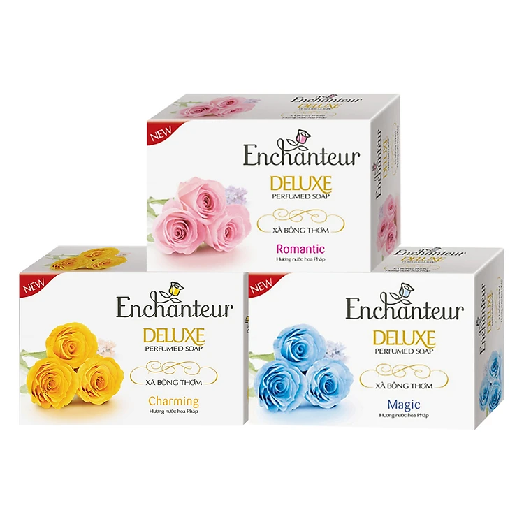 - Combo 3 Xà Bông Enchanteur: Charming + Magic + Romatic nhẹ nhàng làm sạch, loại bỏ tế bào da lão hóa, tế bào chết đồng thời cung cấp độ ẩm, nuôi dưỡng làn da mềm mại, mịn màng.
