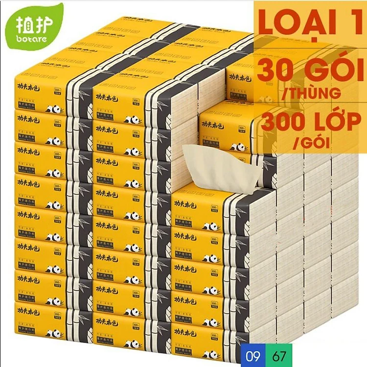 Combo 30 gói giấy ăn than tre gấu trúc Botare 300 tờ/gói