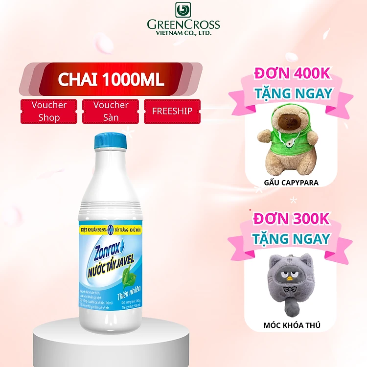 Combo 4-12 chai Nước tẩy vết bẩn đa năng khử mùi hôi ZONROX JAVEL 6in1 1000ML