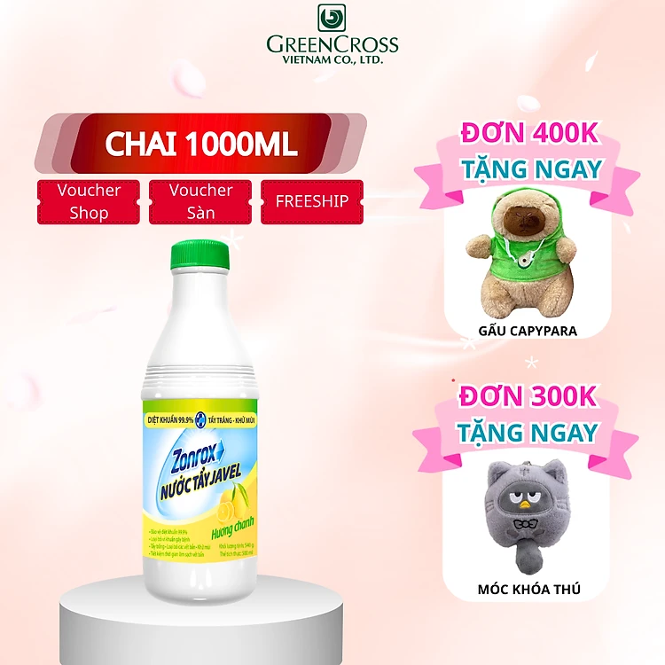 Combo 4-12 chai Nước tẩy vết bẩn đa năng khử mùi hôi ZONROX JAVEL 6in1 1000ML