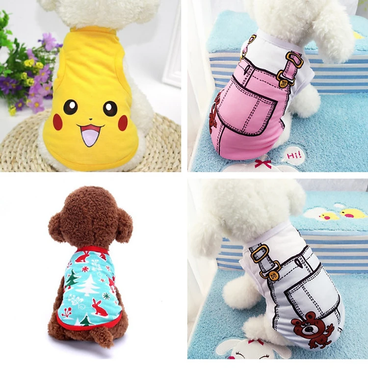 - Áo thun 3 lỗ cho chó mèo được in những màu săc tươi sáng với họa tiết hoạt hình vô cùng dễ thương