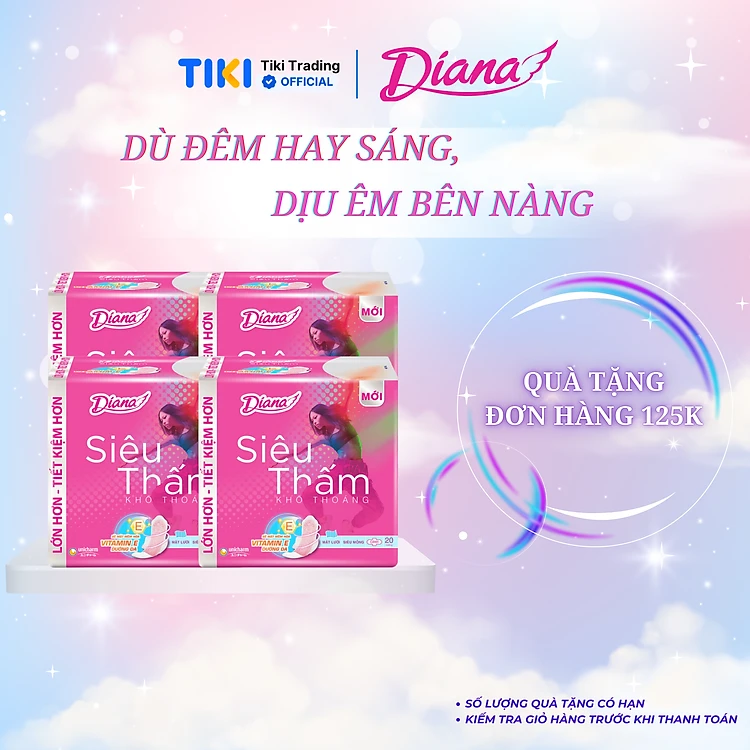 Combo 4 Băng vệ sinh Diana siêu thấm siêu mỏng cánh 20 miếng/gói