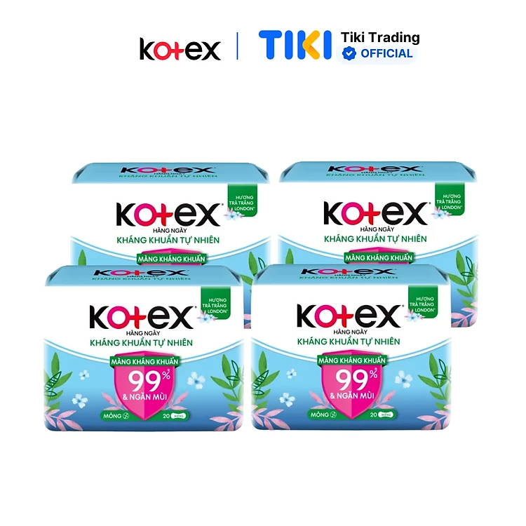 Combo 4 Băng Vệ Sinh Kotex Hằng Ngày Kháng Khuẩn Hương Tự Nhiên - Gói 20 miếng