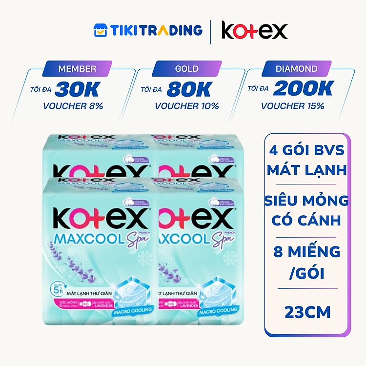 Combo 4 Băng vệ sinh Kotex Max Cool French Spa 23cm 8 miếng Có Cánh