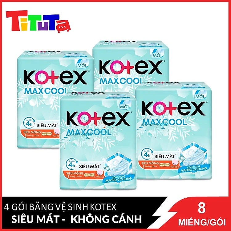 Combo 4 Băng Vệ Sinh Siêu Mỏng Không Cánh 23cm 8 Miếng Kotex MaxCool Mặt Bông Mềm Mại