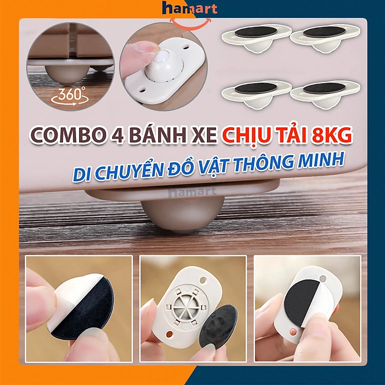 COMBO 4 Bánh Xe Nhựa Inox Di Chuyển Đồ Vật Keo Dán 3M Xoay Linh Hoạt 360° Chịu Tải Lớn