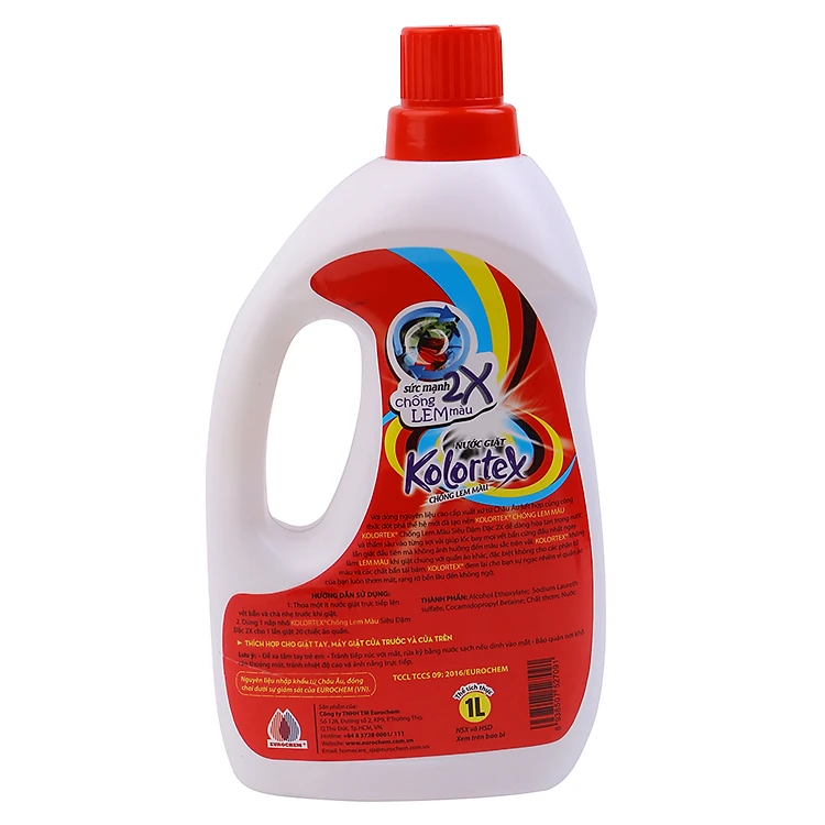 - Combo 4 Chai Nước Giặt Kolortex Chống Lem Màu - 4NGCLM-K1L (1 lít / Chai) được nhập khẩu nguyên liệu từ Châu Âu, với công thức ưu việt đậm đặc gấp 2 lần bột giặt thông thường, các hoạt chất rất năng động dễ dàng hòa tan trong nước và thấm sâu vào từng sợi vải, giúp lốc bay mọi vết bẩn cứng đầu nhất chỉ sau 1 lần giặt.