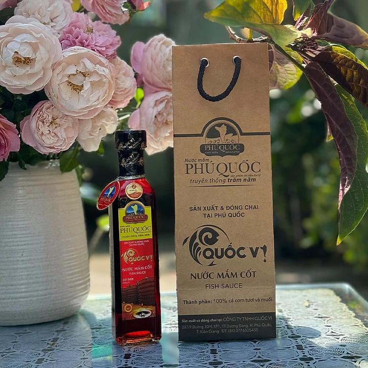 Túi 4 Chai Nước Mắm Cốt Phú Quốc - Quốc Vị Độ Đạm 40N Chai Thủy Tinh 250ml Cá Cơm
