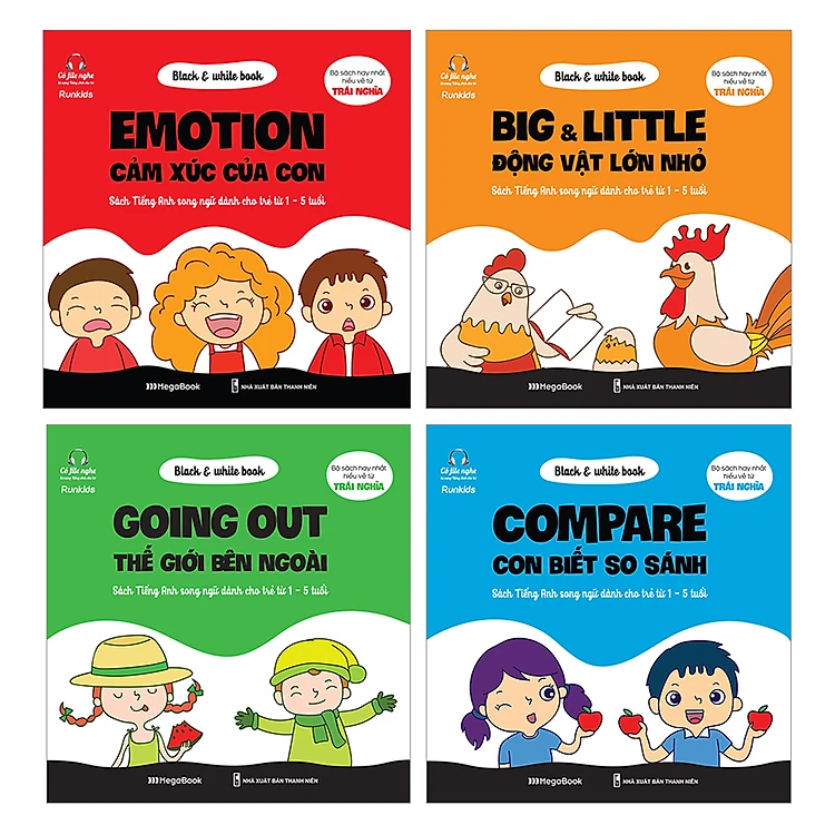- Hiểu được điều này, Combo 4 Cuốn Black & White Book sẽ giúp bé: Ghi nhớ cực nhanh qua các cụm từ trái nghĩa.