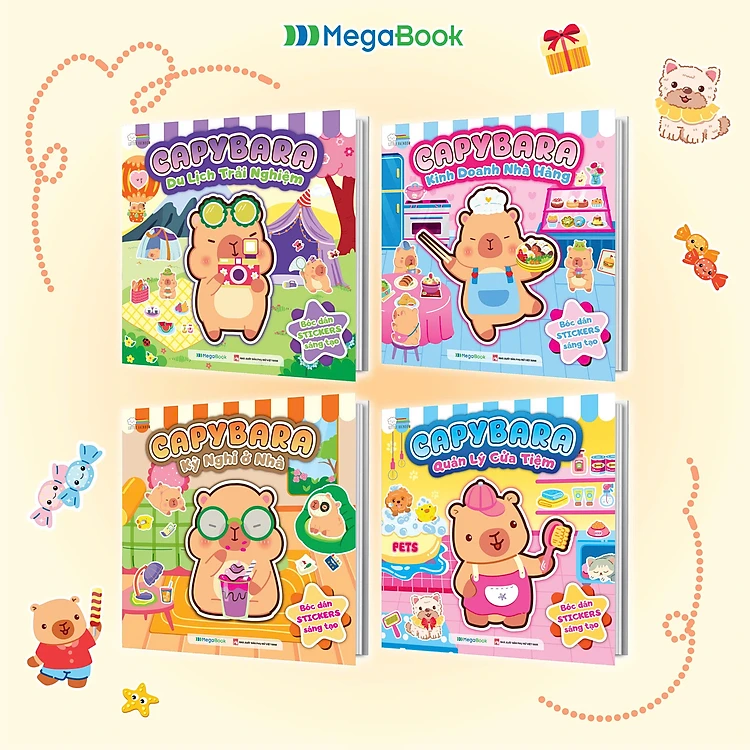 Combo 4 cuốn Đồ chơi bóc dán sticker Capybara cho bé