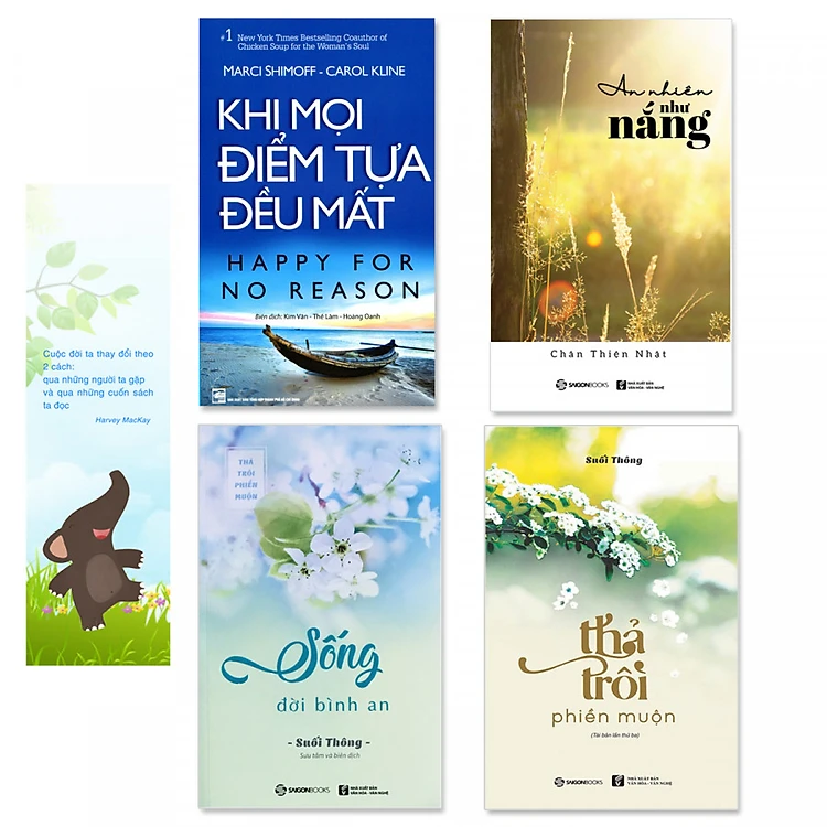 Combo 4 cuốn: Khi Mọi Điểm Tựa Đều Mất, Sống Đời Bình An, Thả Trôi Phiền Muộn, An Nhiên Như Nắng (Tặng kèm bookmark danh ngôn hình voi)